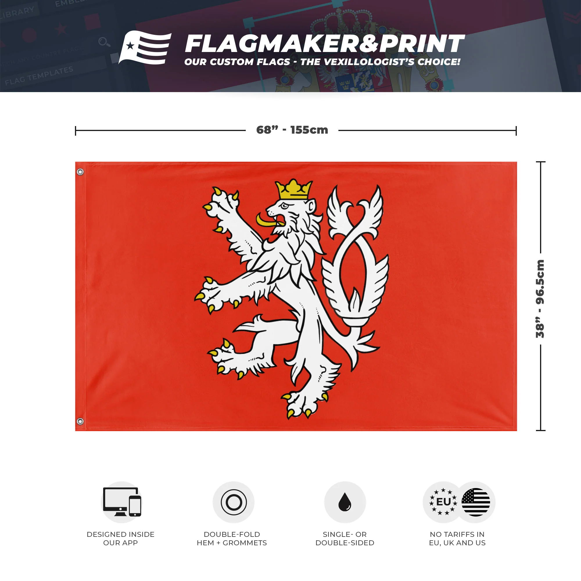 🎌 All our flags are 3x5ft, single - or double - sided, grommetted on the hoist side. If you have special requests, don't hesitate to reach out to us via our contact page!
