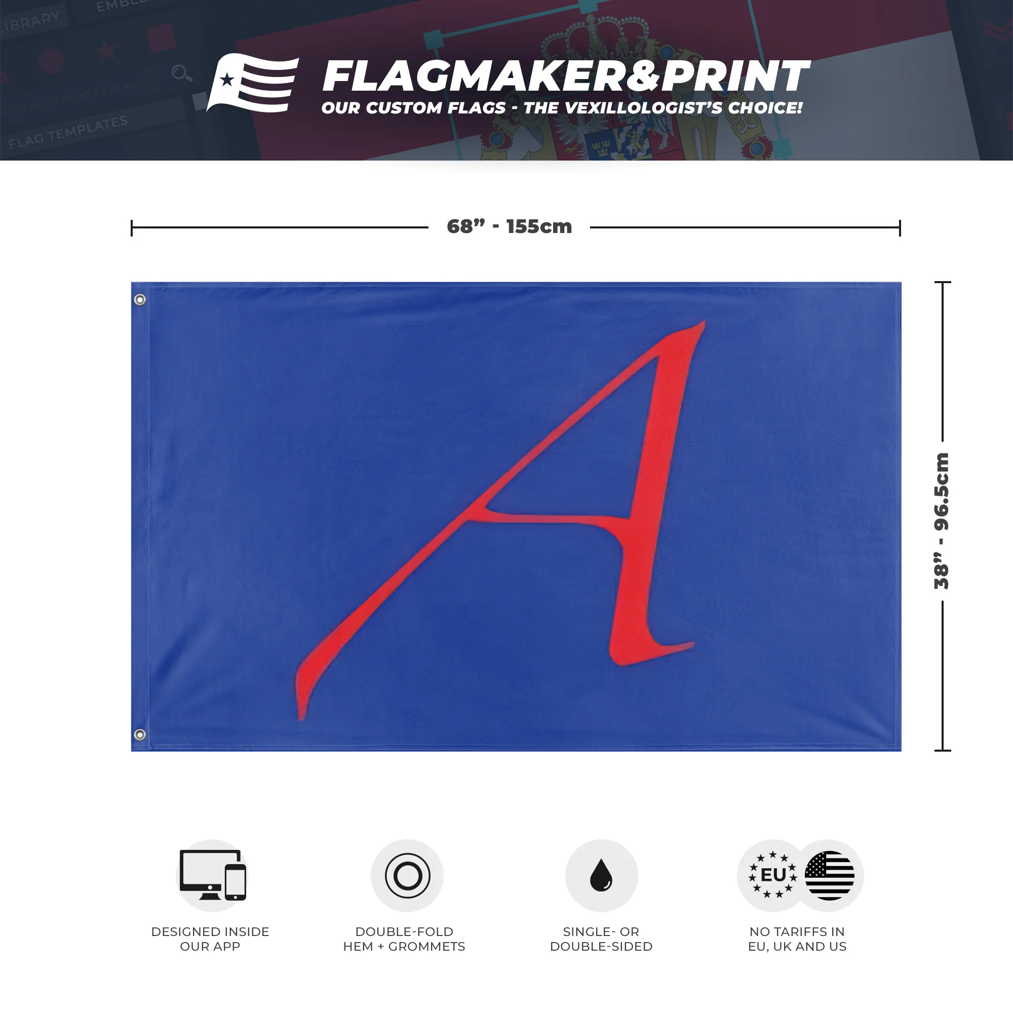 📐 Custom Flag made with our flag making app, Flagmaker & Print. Learn more about our product line-up on the Custom Flag Product Details page. This custom flag design is available as both a one-sided wall flag, or a double-sided display flag.