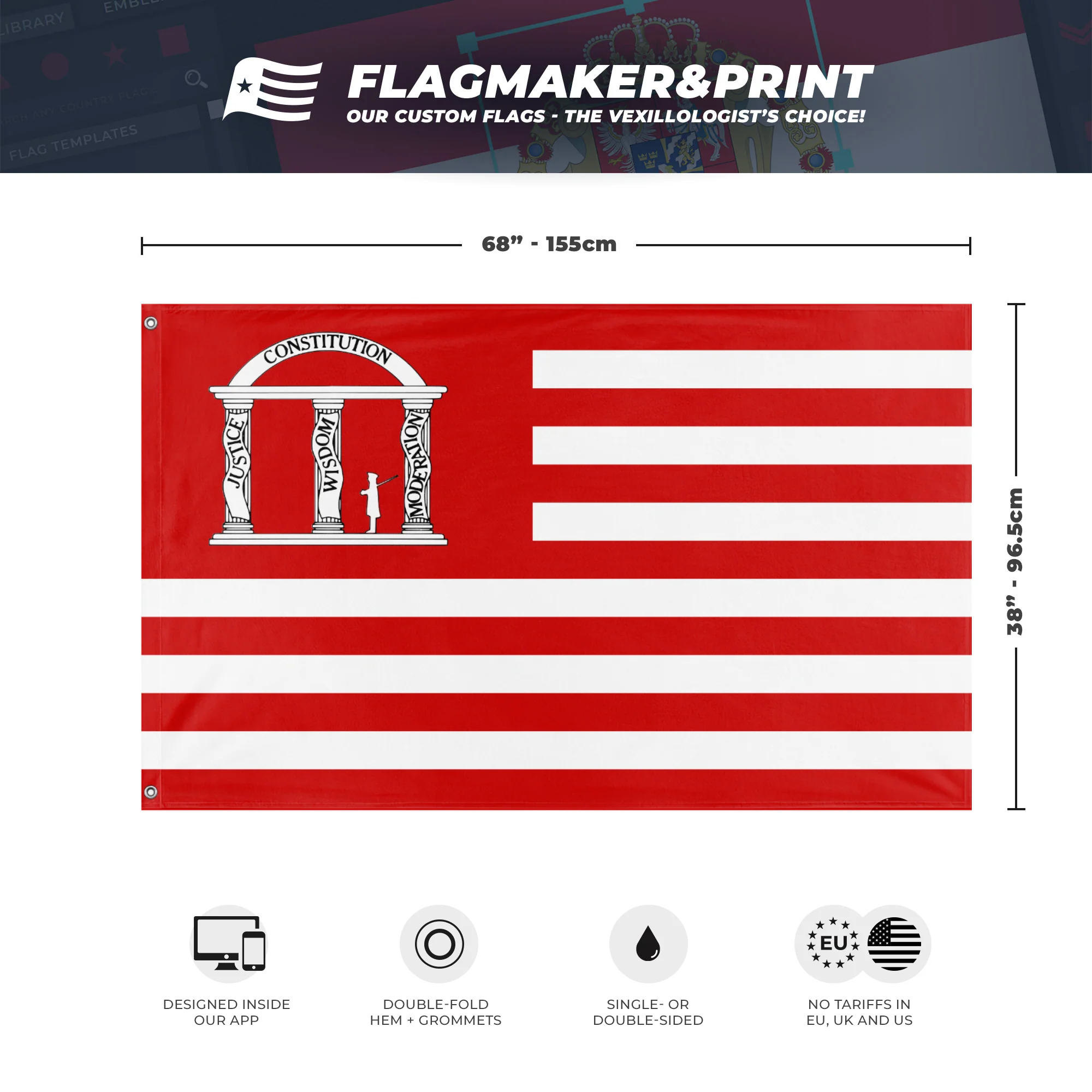 📐 Custom Personalized Flag made with Flagmaker & Print. Learn more about our product line-up on the Product Details page. This custom flag design is available as both a one-sided wall flag, or a double-sided display flag