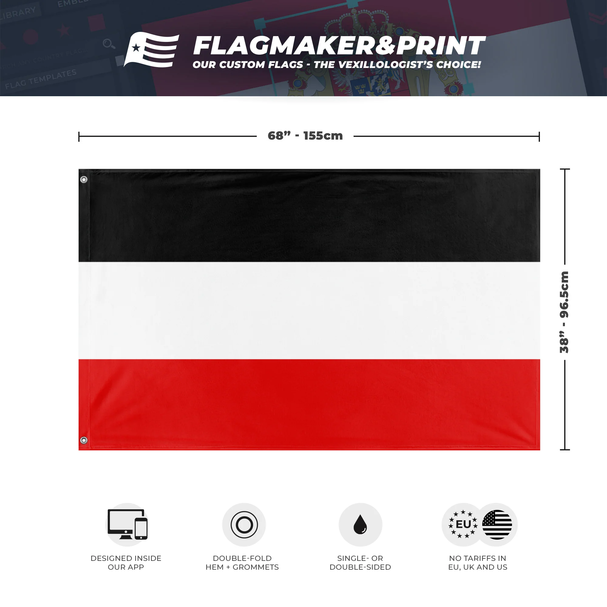✒️ The flag of the German Empire, used from 1867 to 1919, was a horizontal tricolor. It consisted of three equal bands of black, white, and red. These colors were chosen by Otto von Bismarck and were first used by the North German Confederation. After the Franco-Prussian War and the unification of Germany, the flag was adopted by the newly formed German Empire. The black-white-red tricolor remained the national flag throughout the Empire's existence. It was used on land and at sea, with variations featuring the Prussian eagle for naval ensigns. The flag was ultimately discarded in the wake of Germany's defeat in World War I and the subsequent establishment of the Weimar Republic.