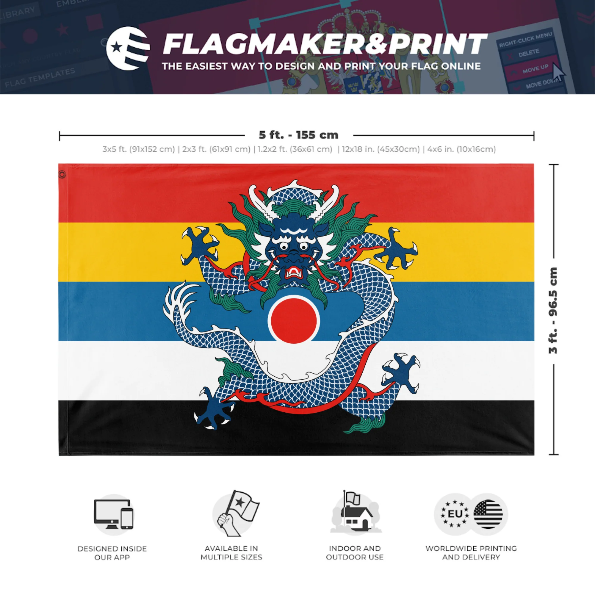 đ Custom Personalized Flag made with Flagmaker & Print. Learn more about our product line-up on the Product Details page. This custom flag design is available as both a one-sided wall flag, or a double-sided display flag