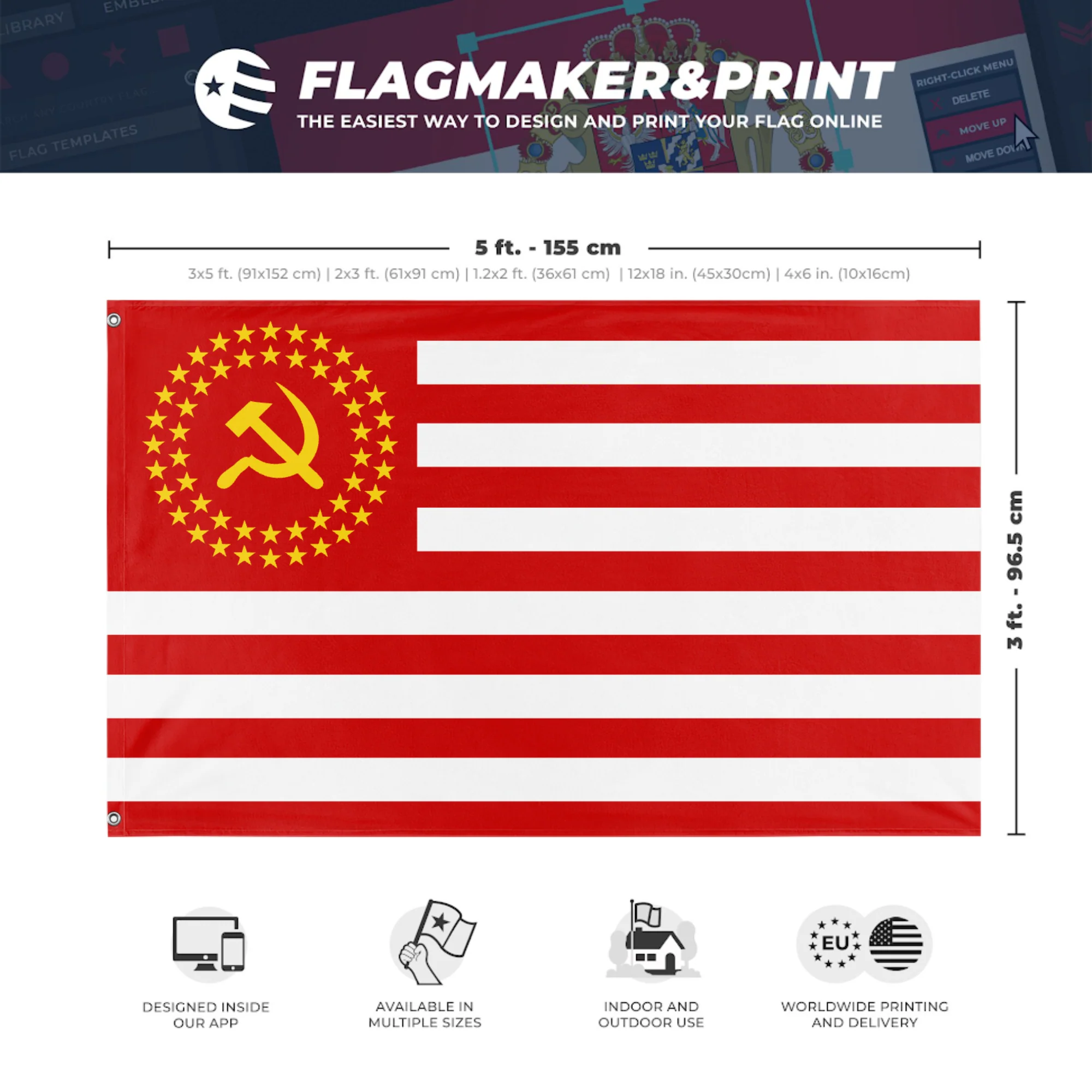 βοΈ The Socialist America Flag is a conceptual or symbolic flag used to represent the vision of a socialist United States, blending traditional American imagery with socialist iconography. Variations of the flag often incorporate elements such as the red color associated with labor movements, the raised fist symbolizing solidarity and resistance, or stars reimagined to reflect collective governance and equality. While not an official or standardized emblem, the flag is employed in political art, protest materials, and speculative discourse to express support for democratic socialism, economic justice, and the restructuring of American society along egalitarian and cooperative lines. Its design and interpretation vary widely, reflecting the diverse currents within American leftist thought.
