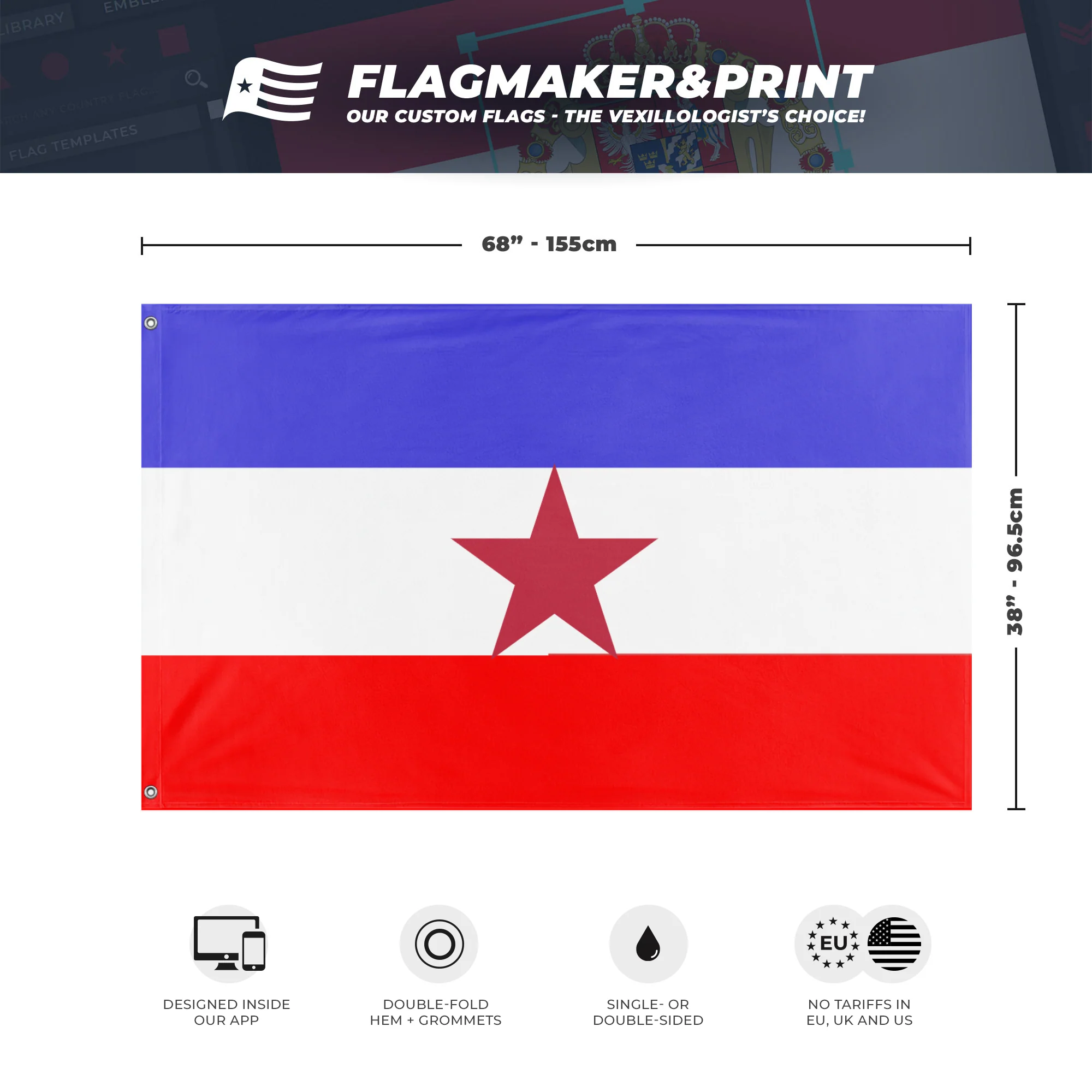 ๐ Custom Personalized Flag made with Flagmaker & Print. Learn more about our product line-up on the Product Details page. This custom flag design is available as both a one-sided wall flag, or a double-sided display flag